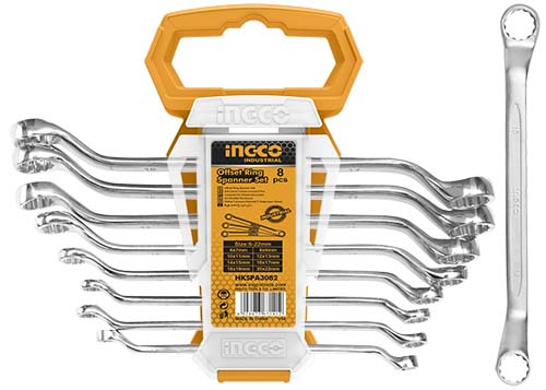 INGCO 8pcs offset ring spanner set Size:6-22mm