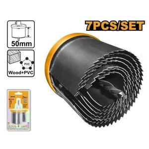 | 7pcs hole saw set Hole saw diameter:26, 32, 38, 45, 50, 56, 63mm Height:50mm(2″) Packed by double blister |