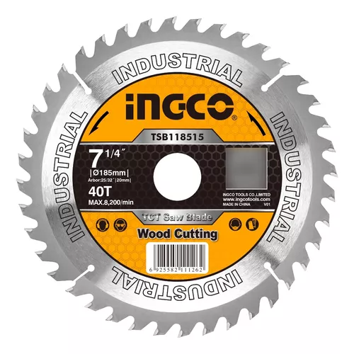 | 185mm(7-1/4″) 40T,arbor:20mm With 16mm reduction ring Suitable for circular sawFor item CS18528 Wood cutting Packed by color box |